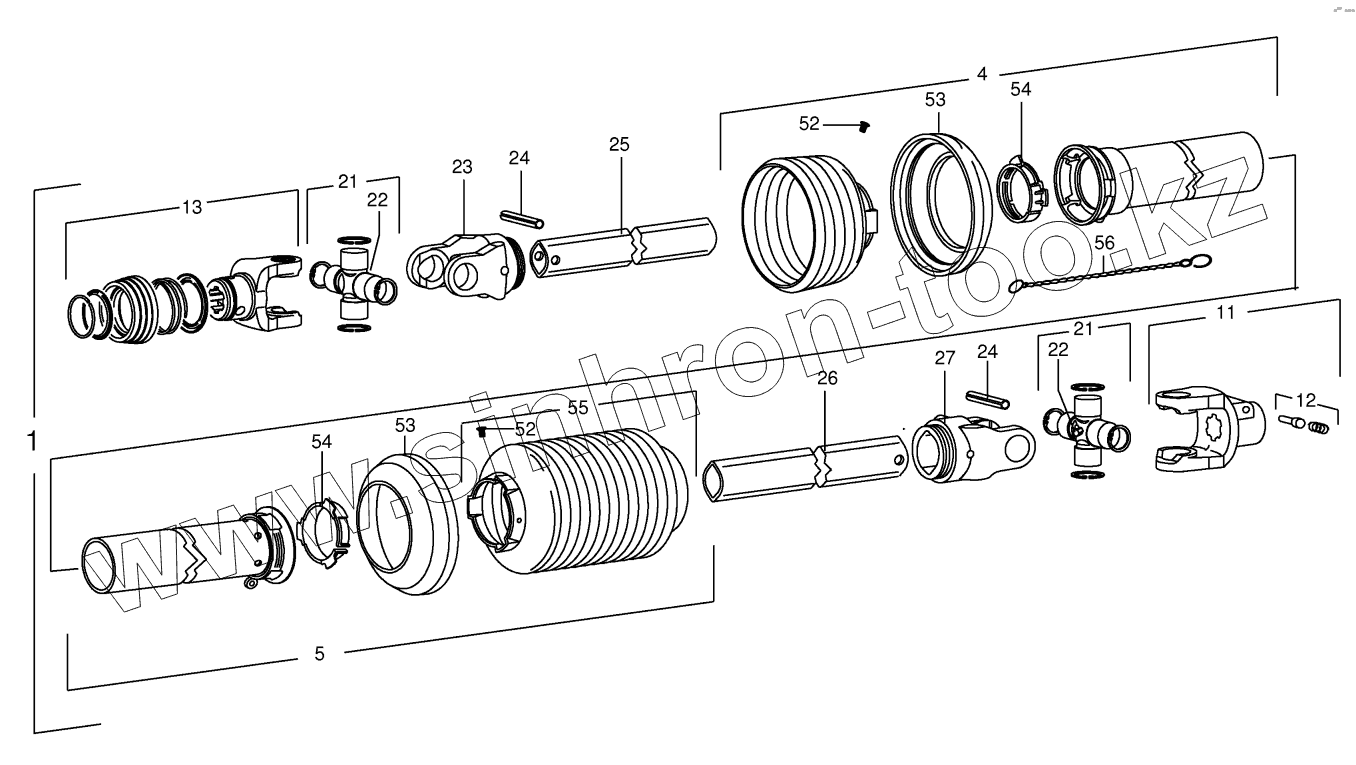 Каталог запасных частей к технике: KRONE EasyCut F360M. Main Pto shaft -W2300-SD25-960