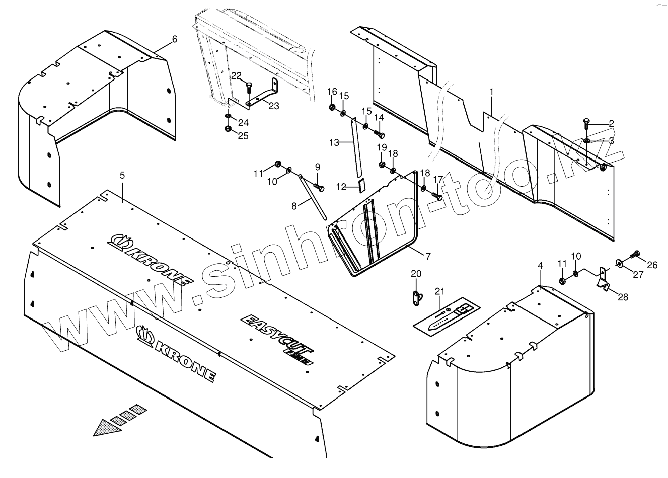 Каталог запасных частей к технике: KRONE EasyCut F360M. Rubber skirts