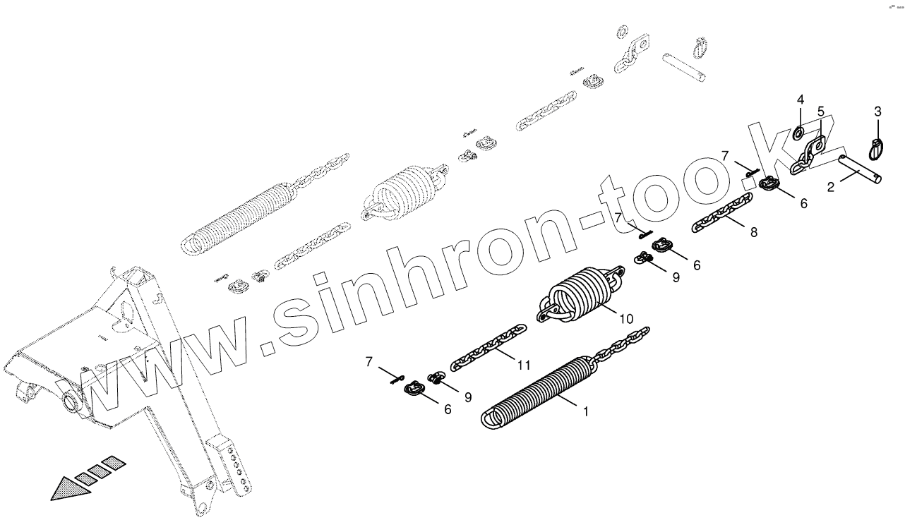 Каталог запасных частей к технике: KRONE EasyCut F360M. Spring compensation