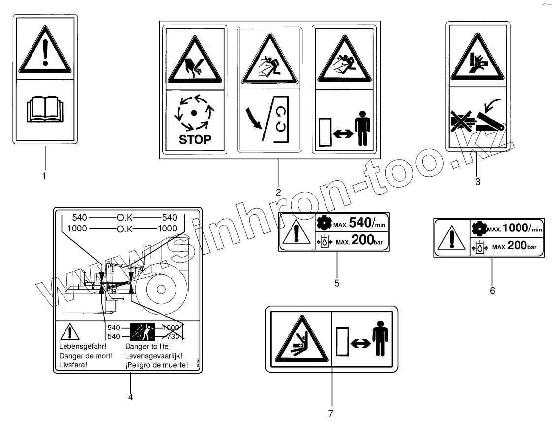 Каталог запасных частей к технике: KRONE EasyCut F360M. Warning signs