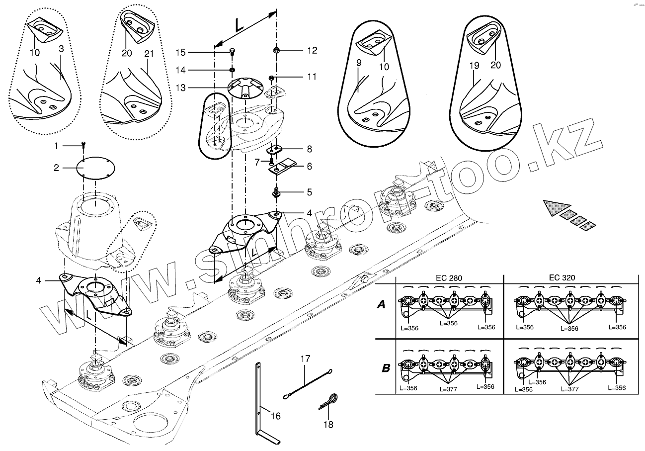 Каталог запасных частей к технике: KRONE EC280/320. Cutter bar with quick coupler