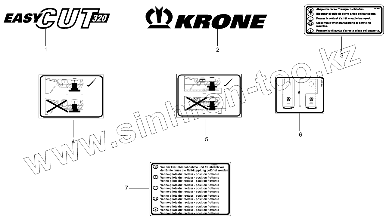 Каталог запасных частей к технике: KRONE EC280/320. General information labels