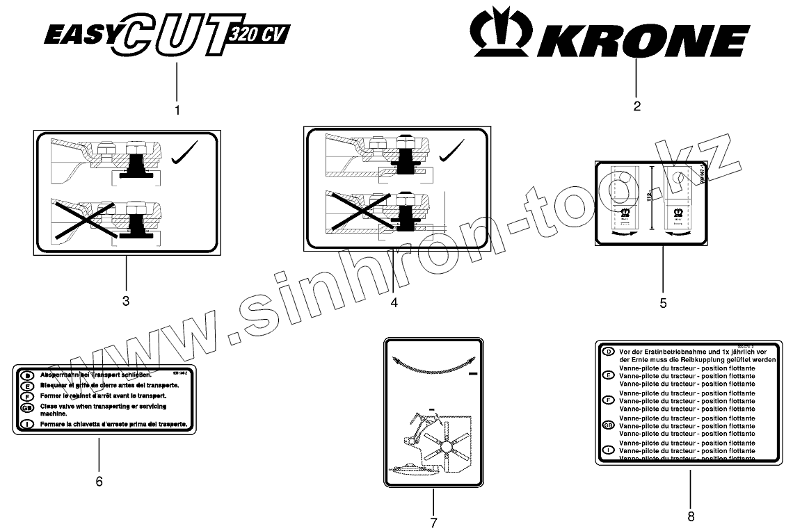 Каталог запасных частей к технике: KRONE EC280CV/320CV. General information labels