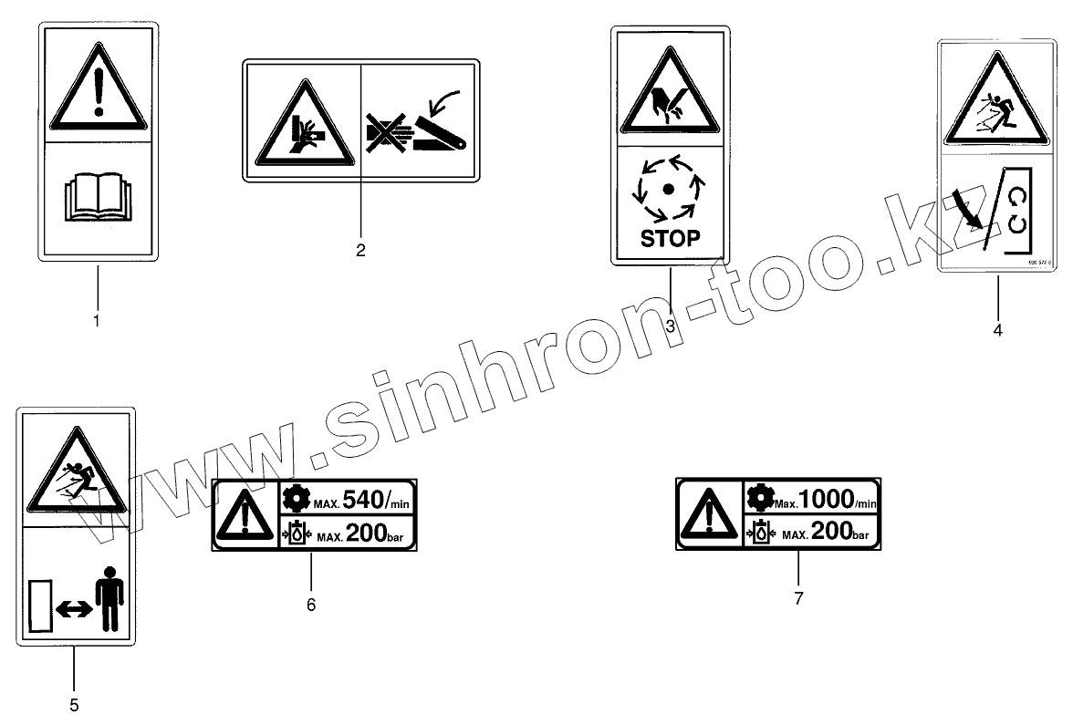 Каталог запасных частей к технике: KRONE EC280CV/320CV/280CR. Warning signs