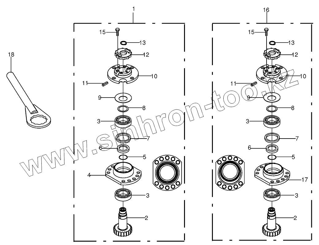 Каталог запасных частей к технике: KRONE EC28CV/C32CV/32CV-F. Bearing housing - SafeCut INSIDE
