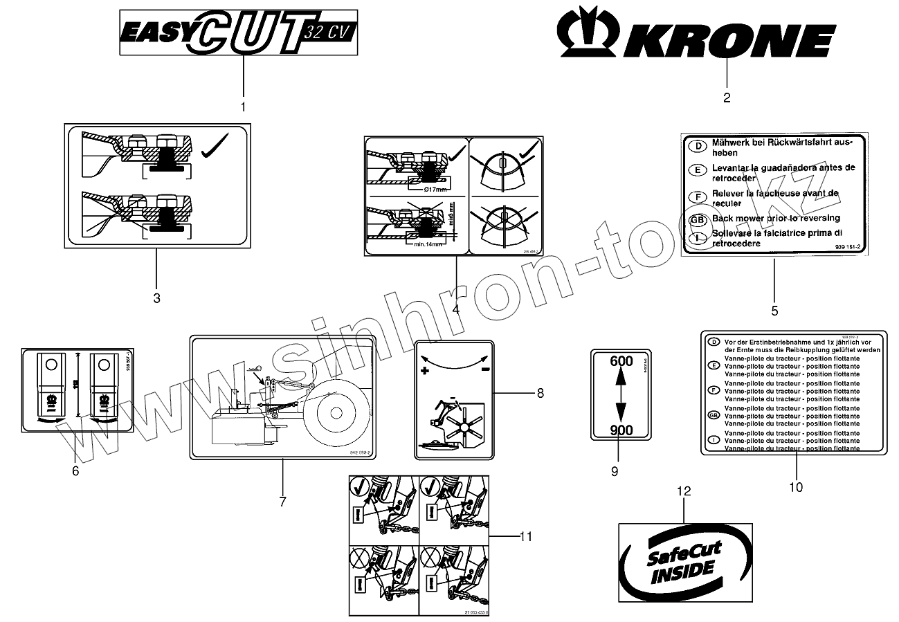 Каталог запасных частей к технике: KRONE EC32CV/32CV-F. General information labels