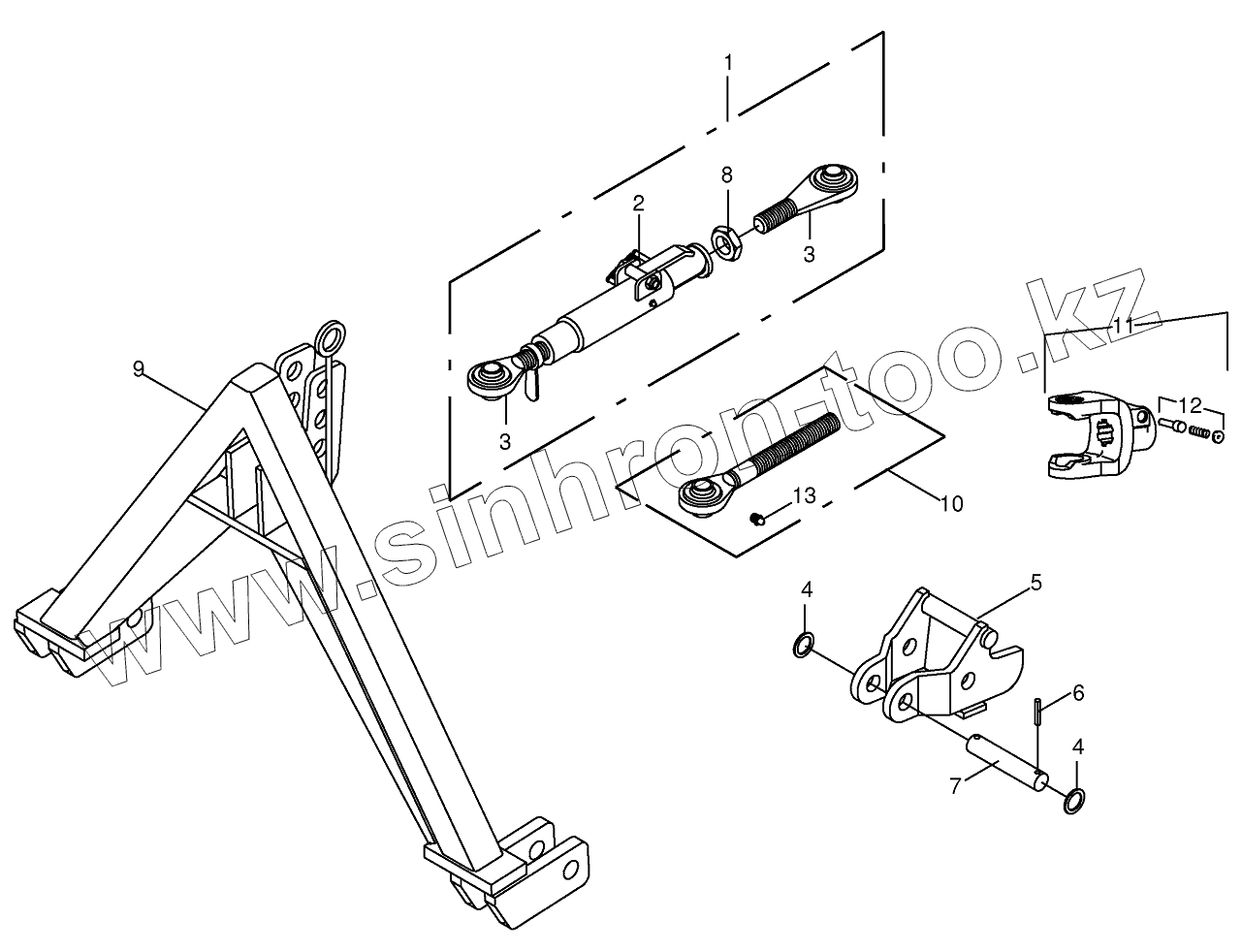 Teelescoping top link-cat. II