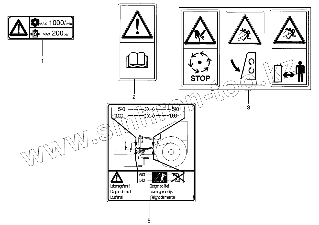 Каталог запасных частей к технике: KRONE EC 28/32CV. Warning signs
