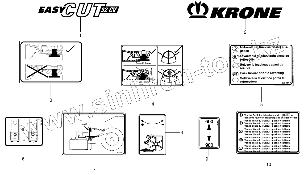 Каталог запасных частей к технике: KRONE EC 28/32CV. General information labels