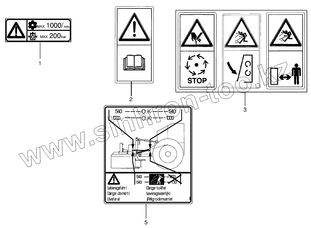 Каталог запасных частей к технике: KRONE EC 28/32CV. Warning signs