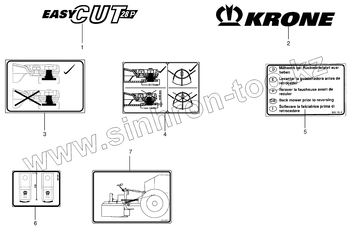Каталог запасных частей к технике: KRONE EC 28/32P. General information labels