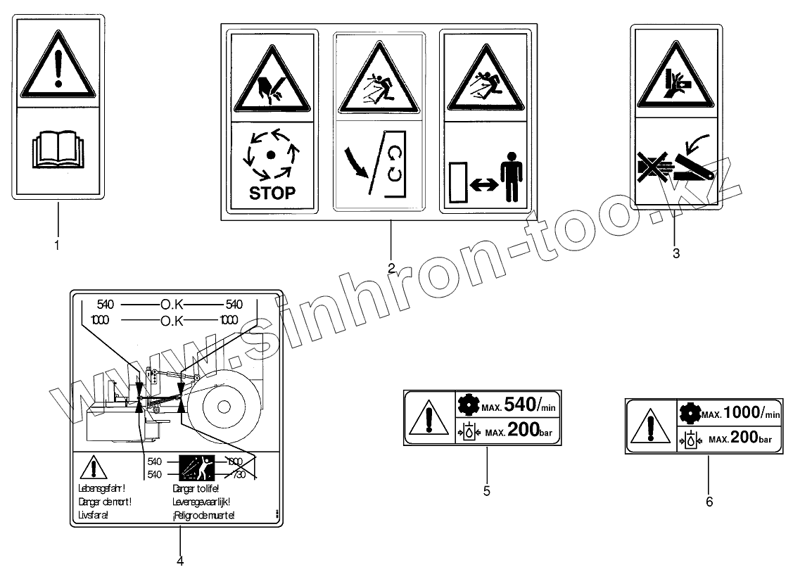 Каталог запасных частей к технике: KRONE EC 28/32P. Warning signs