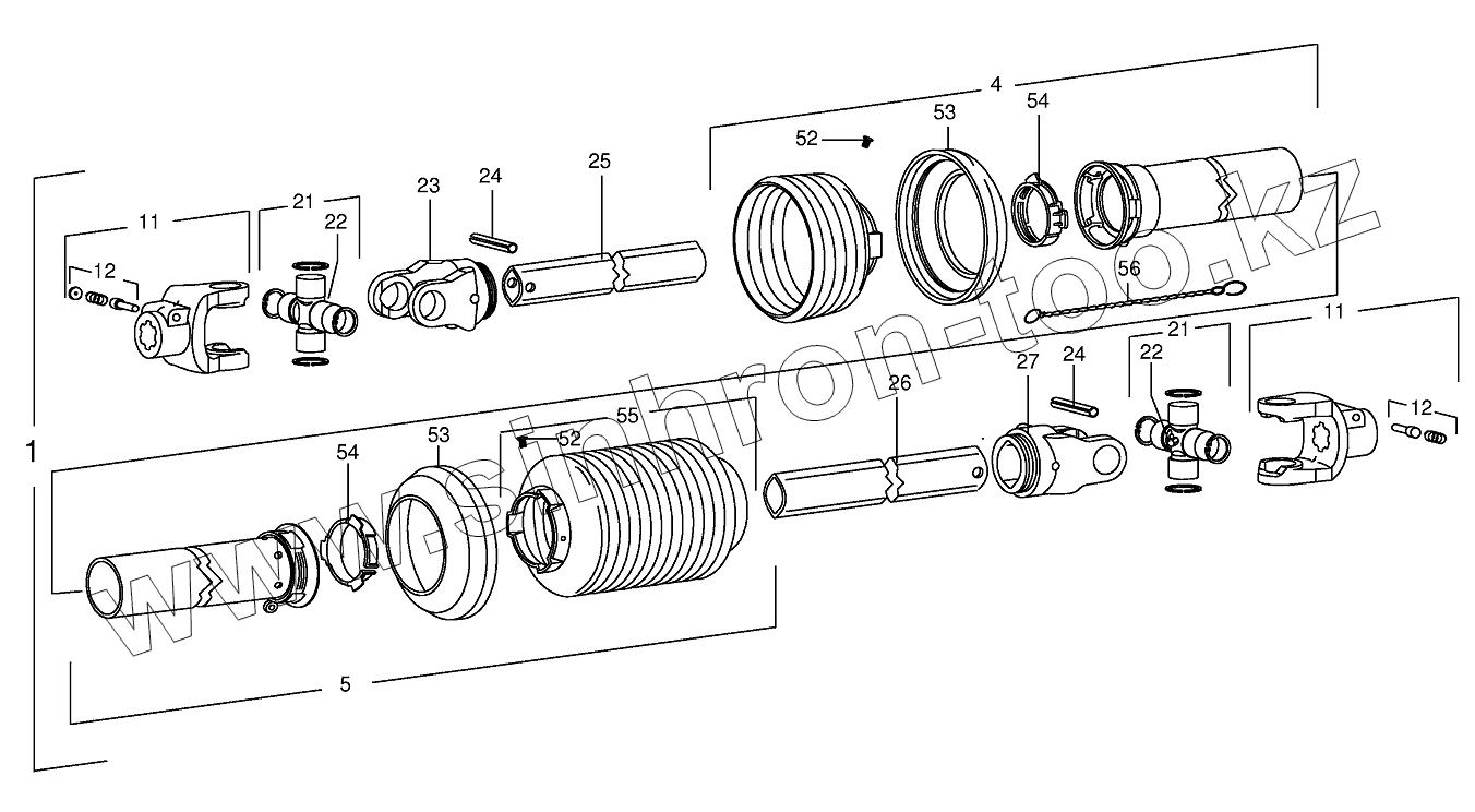 Каталог запасных частей к технике: KRONE EC 32CV. Main Pto shaft (475000-544499)