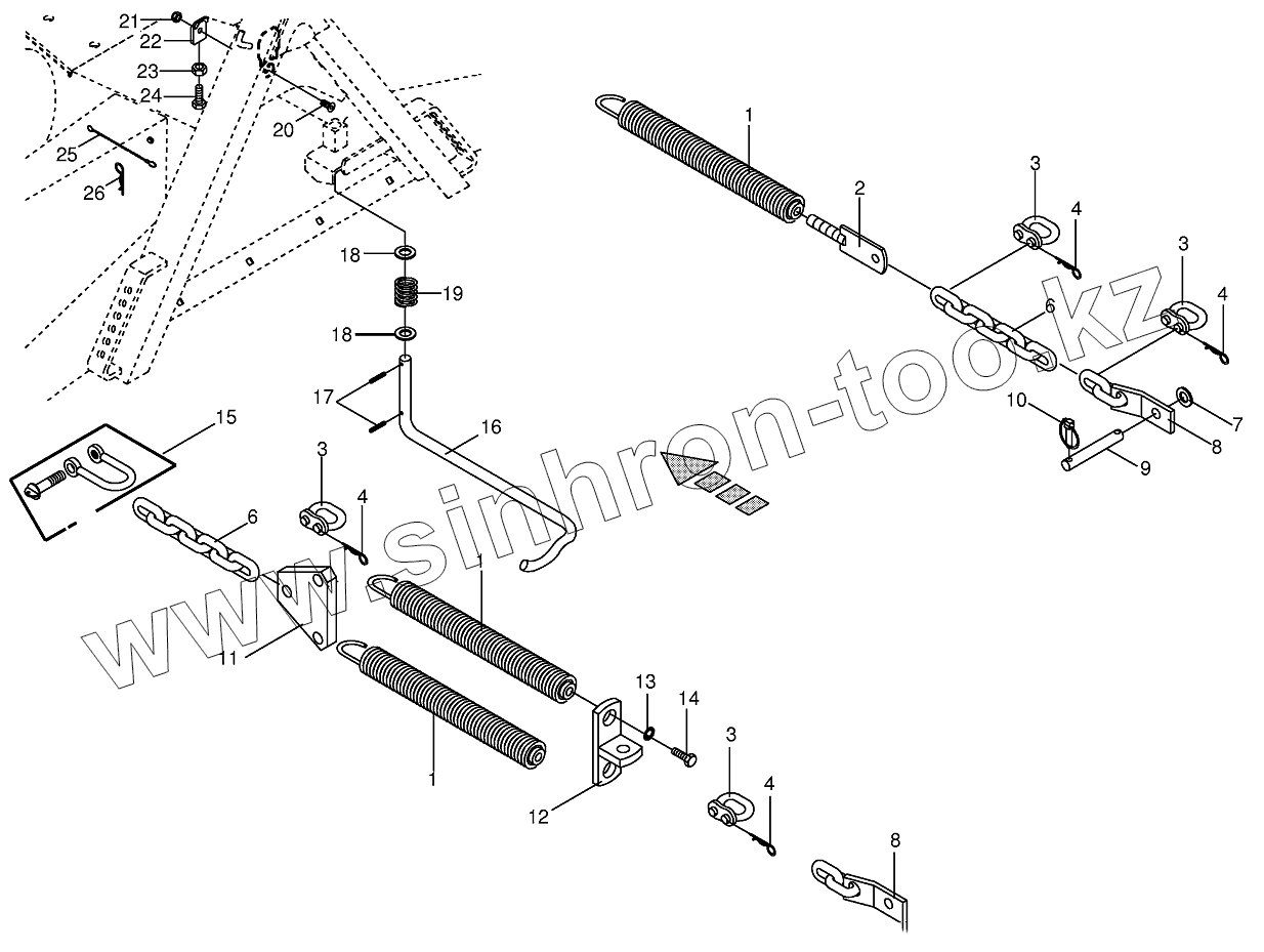 Каталог запасных частей к технике: KRONE EC 32CV. Spring compensation (530001-544499)