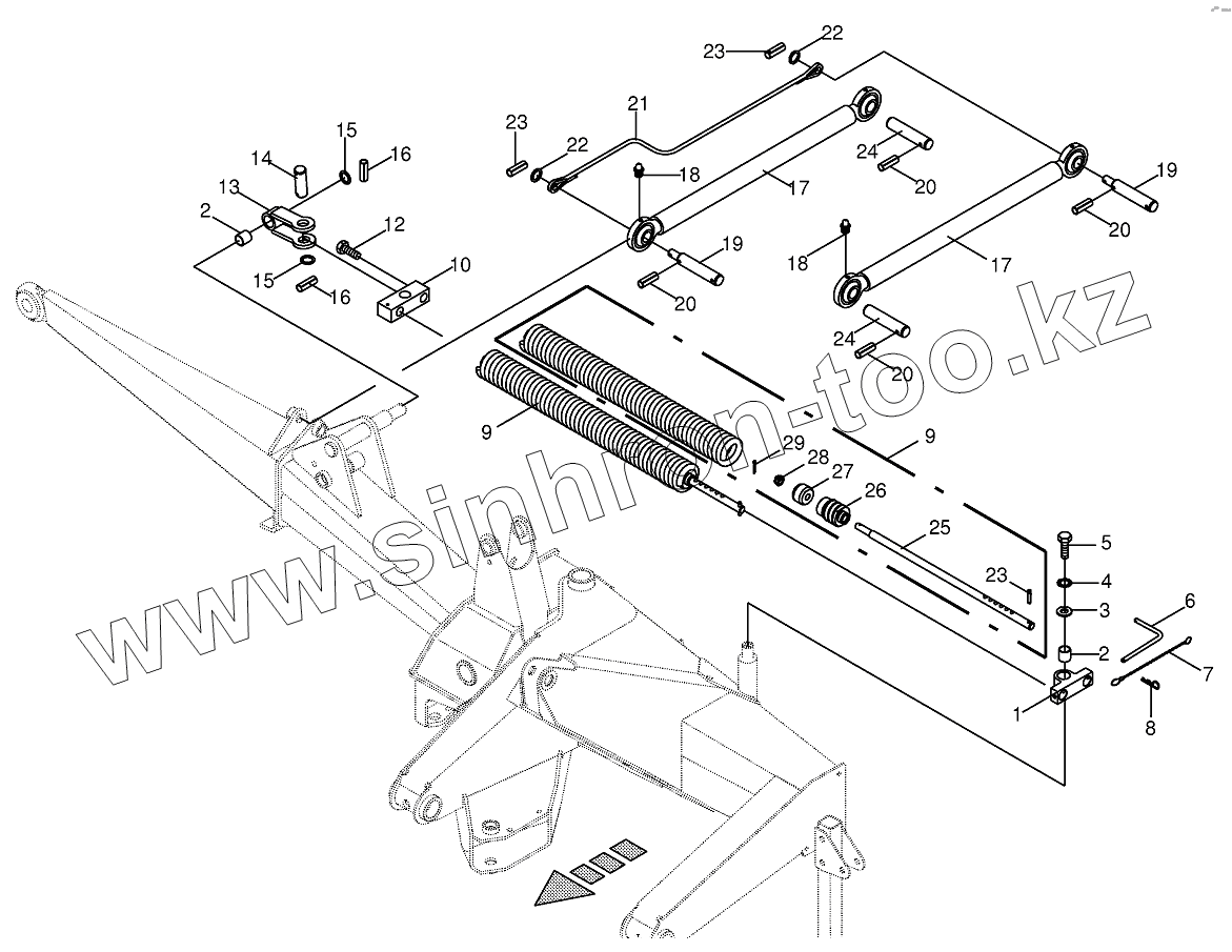 Каталог запасных частей к технике: KRONE EC 360/400. Spring compensation/Upper link