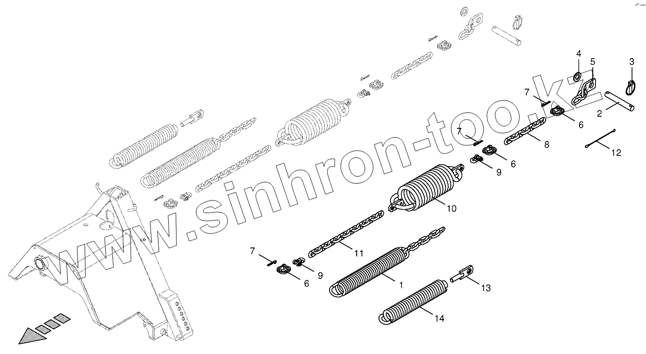 Каталог запасных частей к технике: KRONE EC F280/320/360. Spring compensation 853001 - 864000
