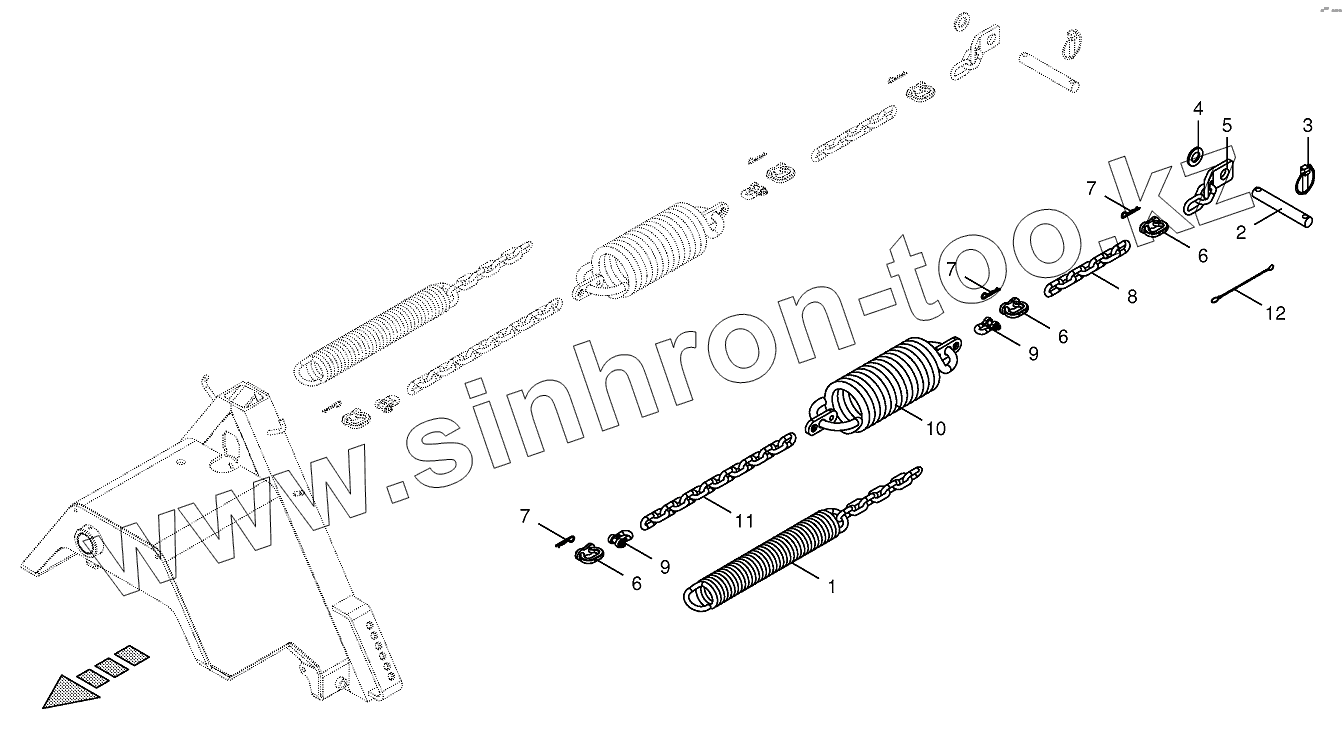 Каталог запасных частей к технике: KRONE EC F280/320/360. Spring compensation 864001 -