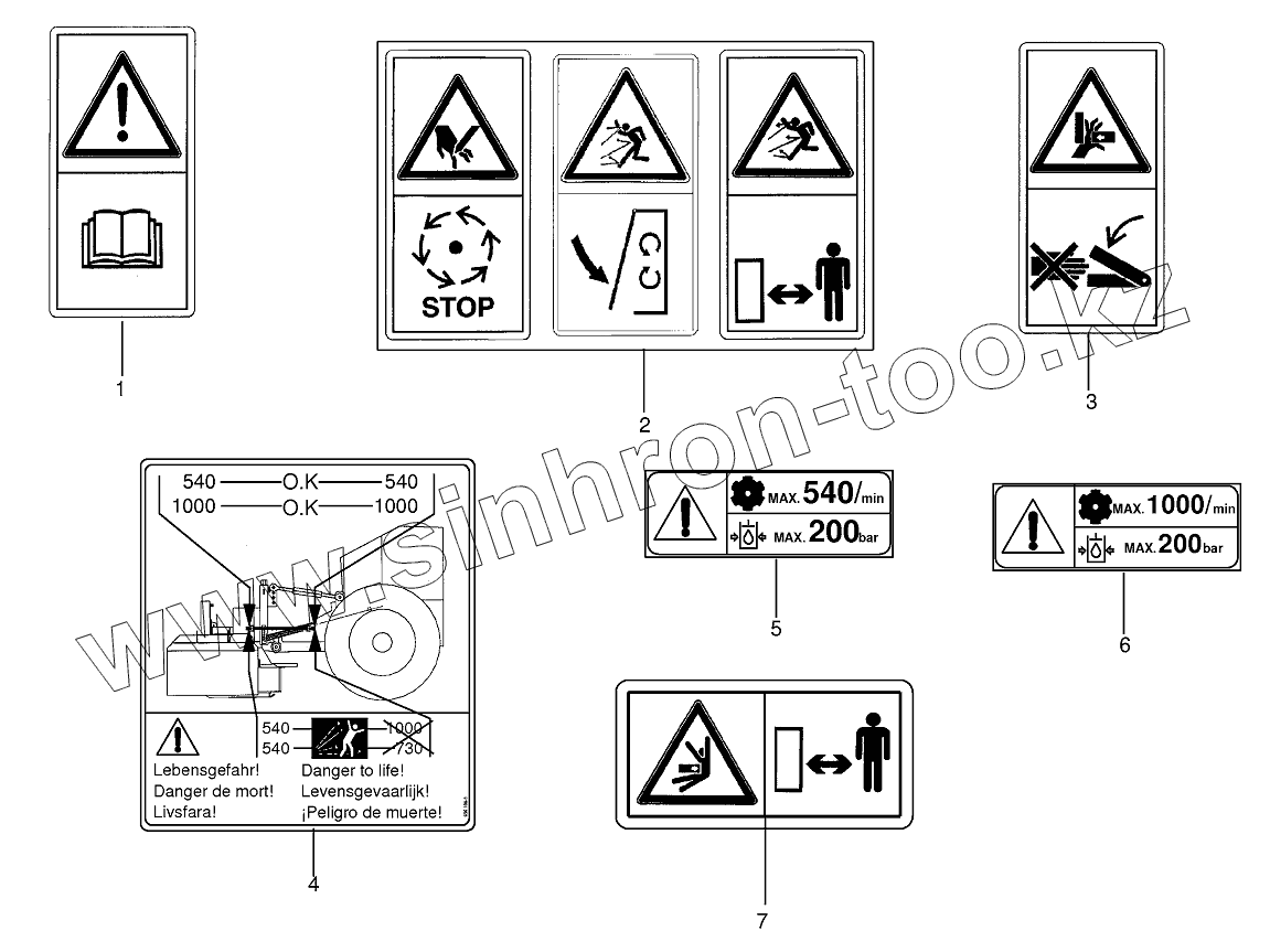Каталог запасных частей к технике: KRONE EC F280 / F320. Warning signs 815000 - 853000