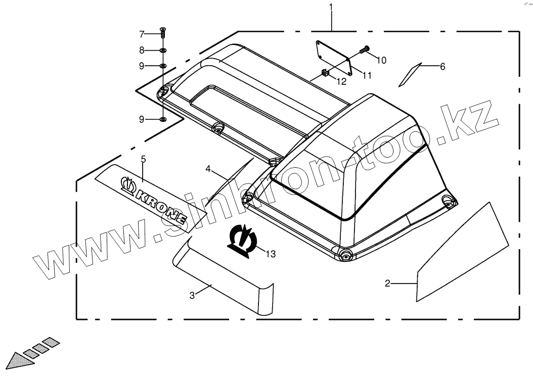 Каталог запасных частей к технике: KRONE EC F320. V-belt guard