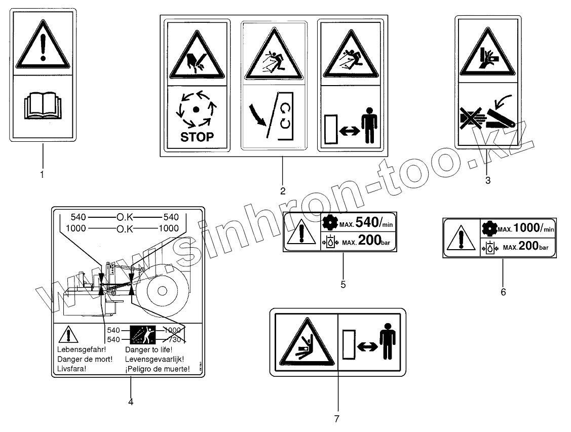 Каталог запасных частей к технике: KRONE EC F320 M. Warning signs
