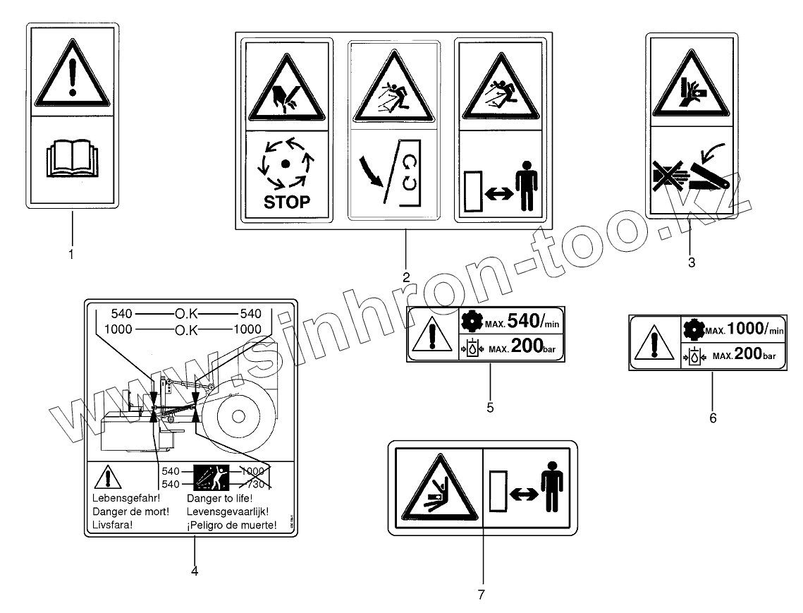 Каталог запасных частей к технике: KRONE EC F320 M. Warning signs