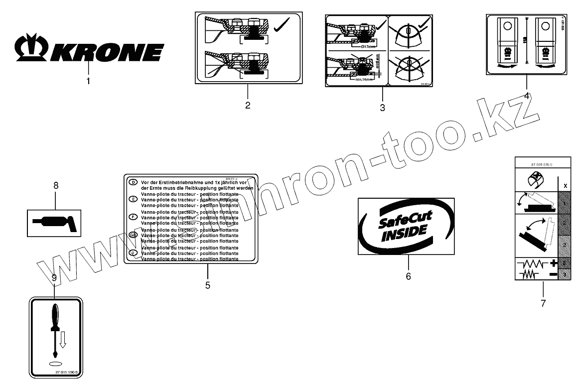 Каталог запасных частей к технике: KRONE EC R280. General information labels