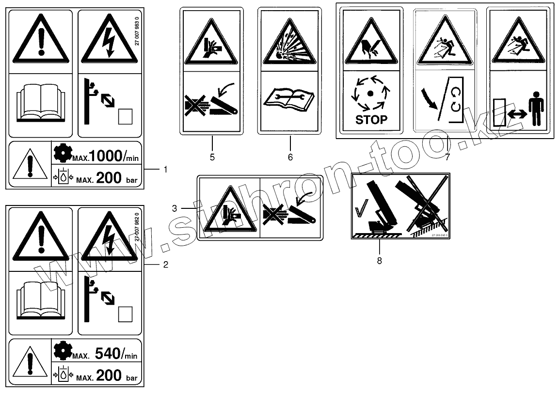 Каталог запасных частей к технике: KRONE EC R320. Warning signs