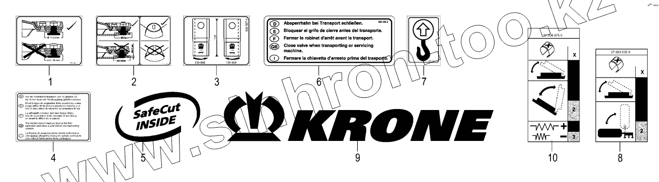 Каталог запасных частей к технике: KRONE EC R400. General information labels