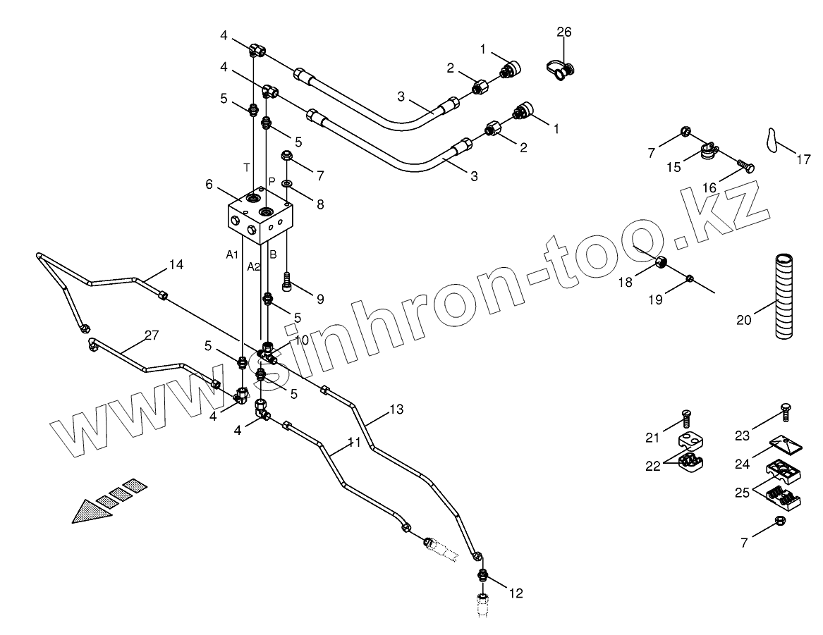 Каталог запасных частей к технике: KRONE EColl.6000,7500,6000FP. Hydraulics-pivoting frame 822346-842000