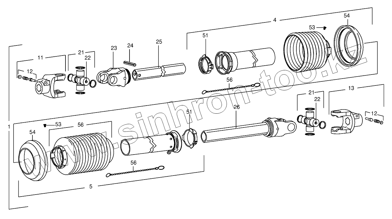 Каталог запасных частей к технике: KRONE EColl.6000,7500,6000FP. Pto drive shaft-NH