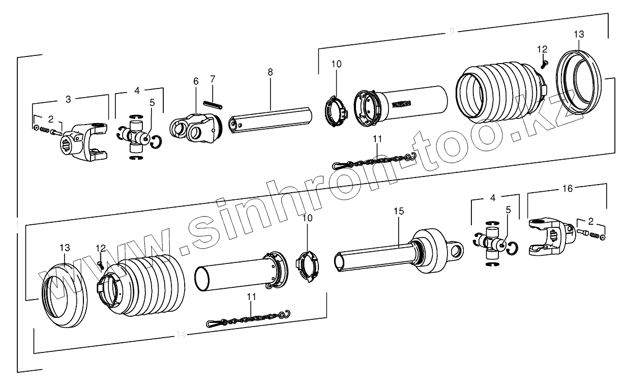 Каталог запасных частей к технике: KRONE EColl.6000,7500,6000FP. Pto drive shaft-NH