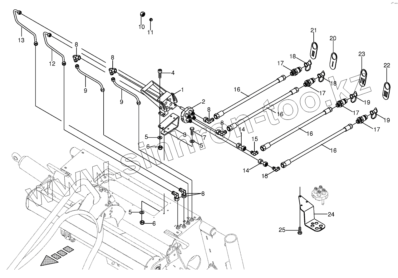 Каталог запасных частей к технике: KRONE EColl.6000,7500,9000,6000F/FP. Hydraulics-Frame/Plug 9000