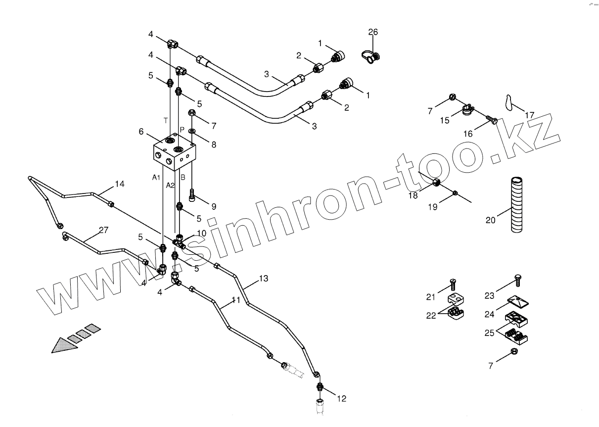 Каталог запасных частей к технике: KRONE EColl.6000,7500,9000,6000F/FP. Hydraulics-pivoting frame