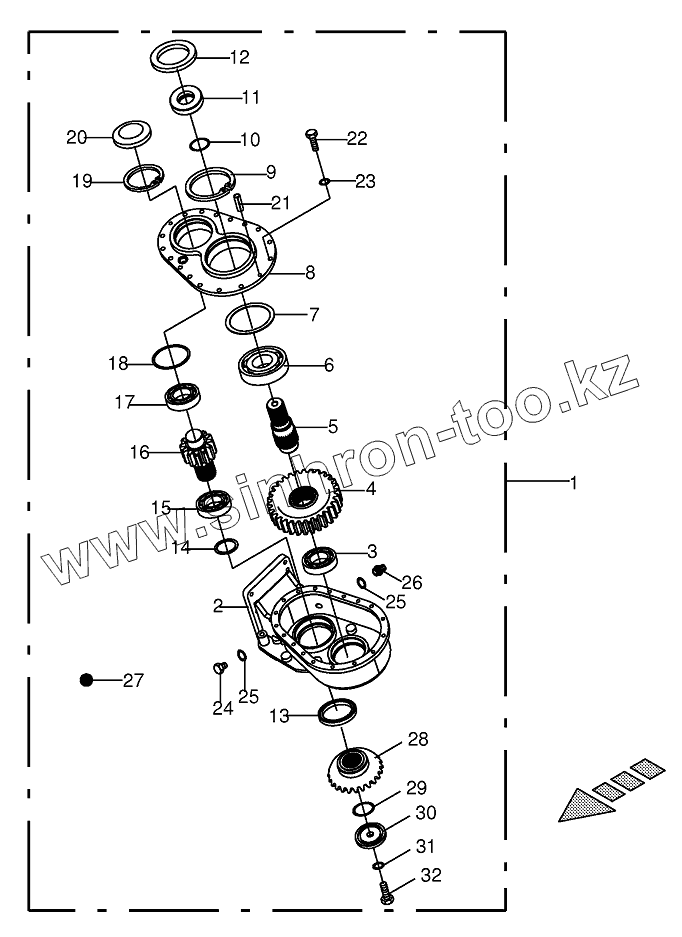 Каталог запасных частей к технике: KRONE ECollect753, 903, 1053. Gearbox housing