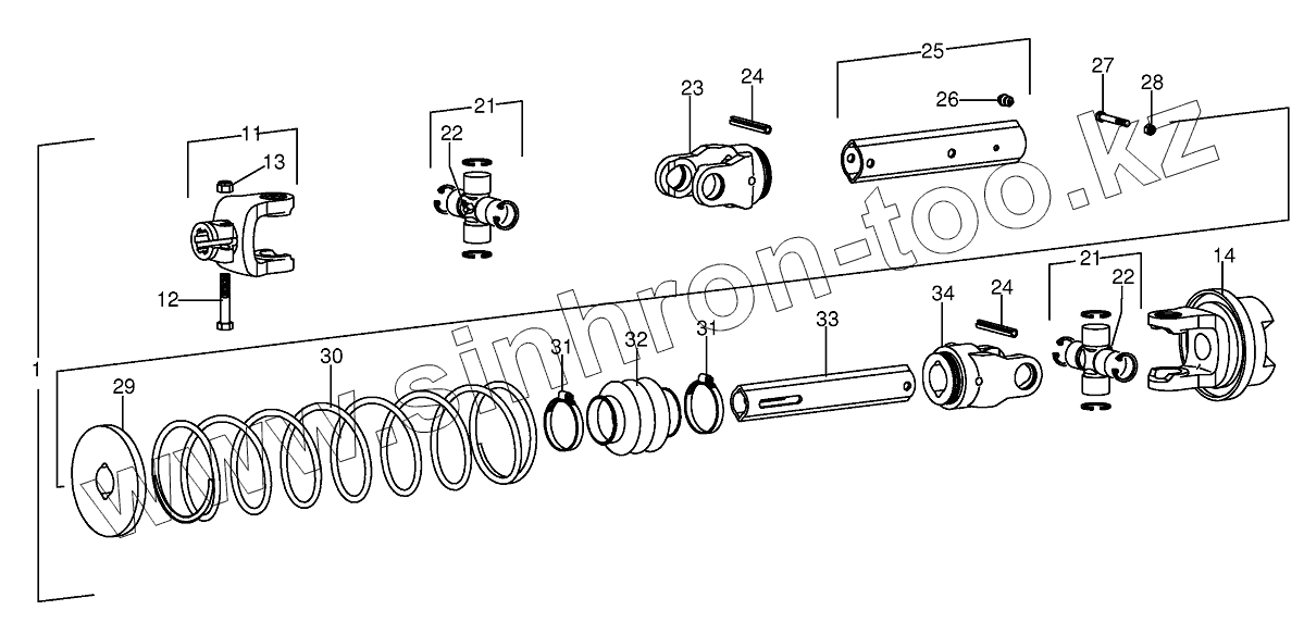 Каталог запасных частей к технике: KRONE ECollect753, 903, 1053. Pto drive shaft 34.0