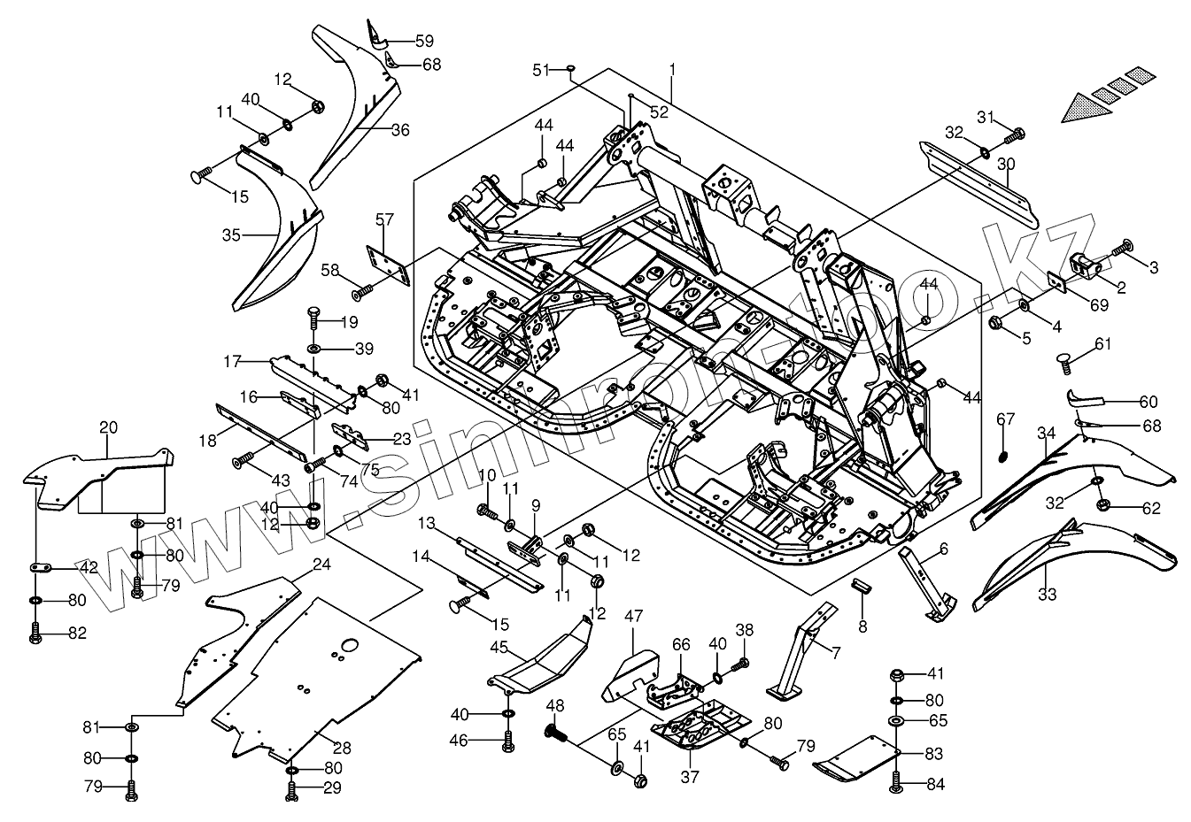 | 1 | 200943341 | Frame centre (1053) + bushings-middle | |