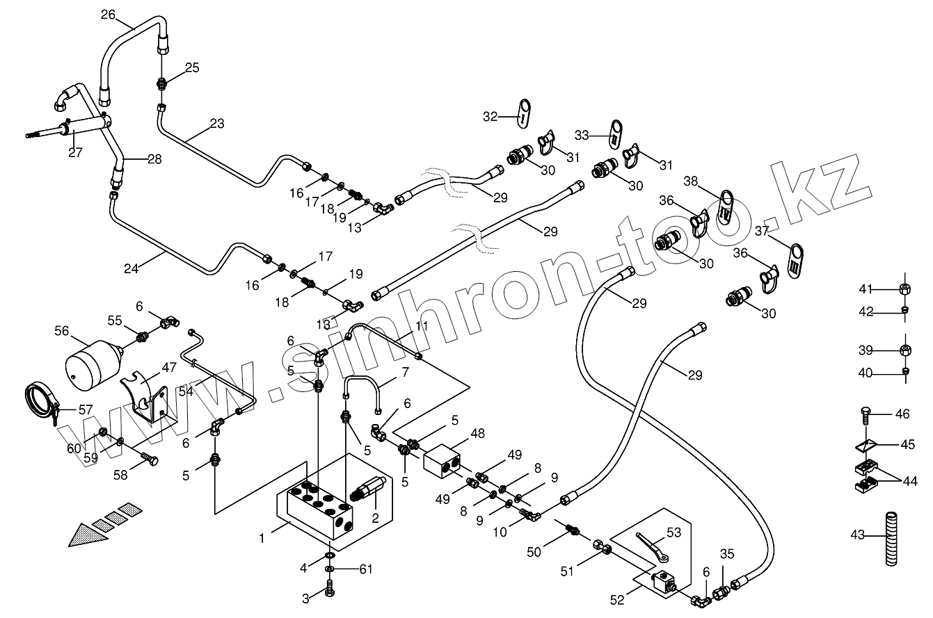 Каталог запасных частей к технике: KRONE ECollect753, 903, 1053. Hydraulics - control bloc 820001 - 855000