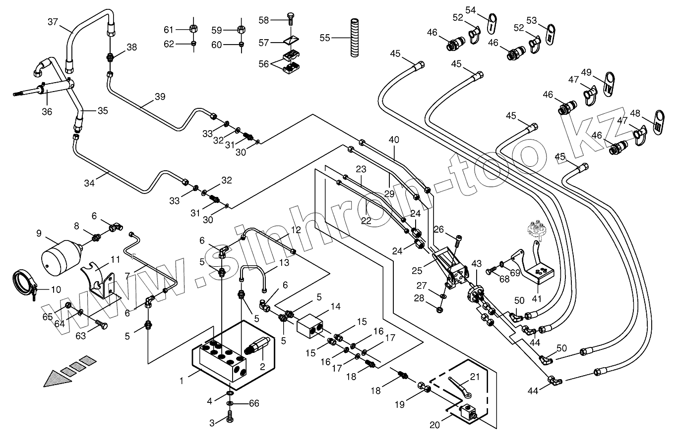 Каталог запасных частей к технике: KRONE ECollect753, 903, 1053. Hydraulics - control bloc 820001 - 855000