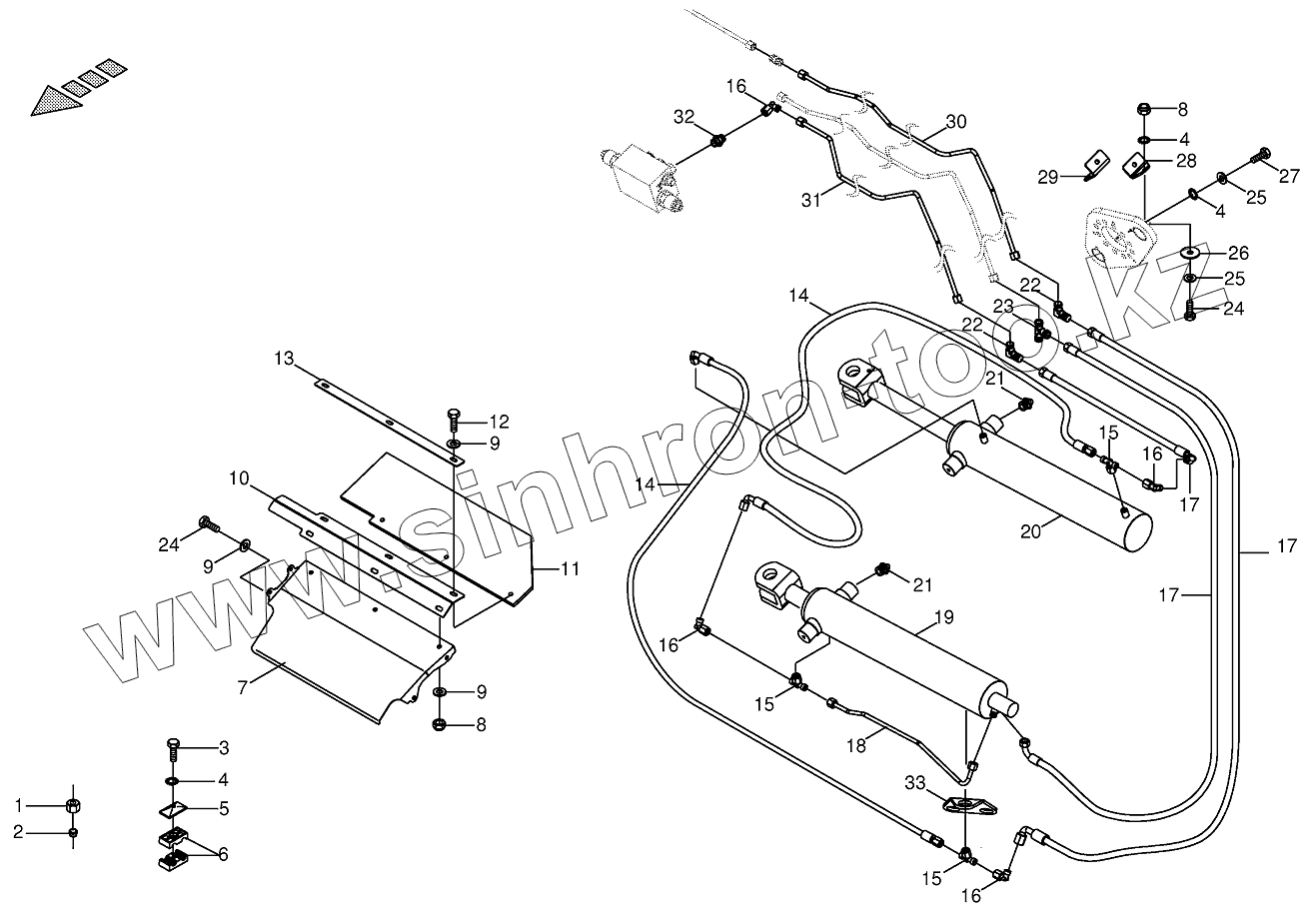 Каталог запасных частей к технике: KRONE ECollect753, 903, 1053. Hydraulics - lift 29.3 855051 -