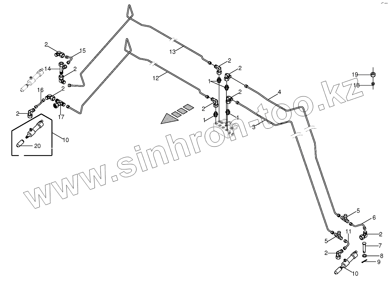 Каталог запасных частей к технике: KRONE ECollect753, 903, 1053. Hydraulics - locking mechanism 820001 - 855000