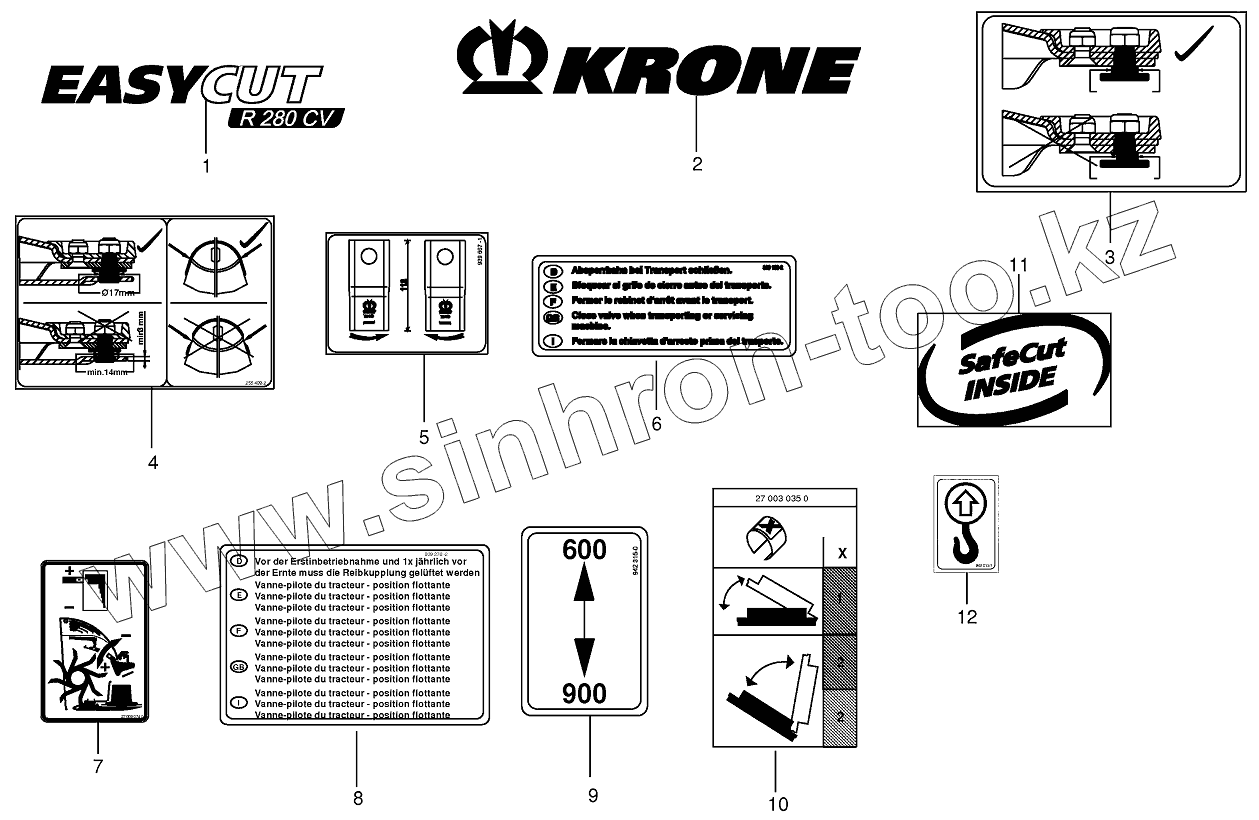 Каталог запасных частей к технике: KRONE ECR280CV/320CV. General information labels