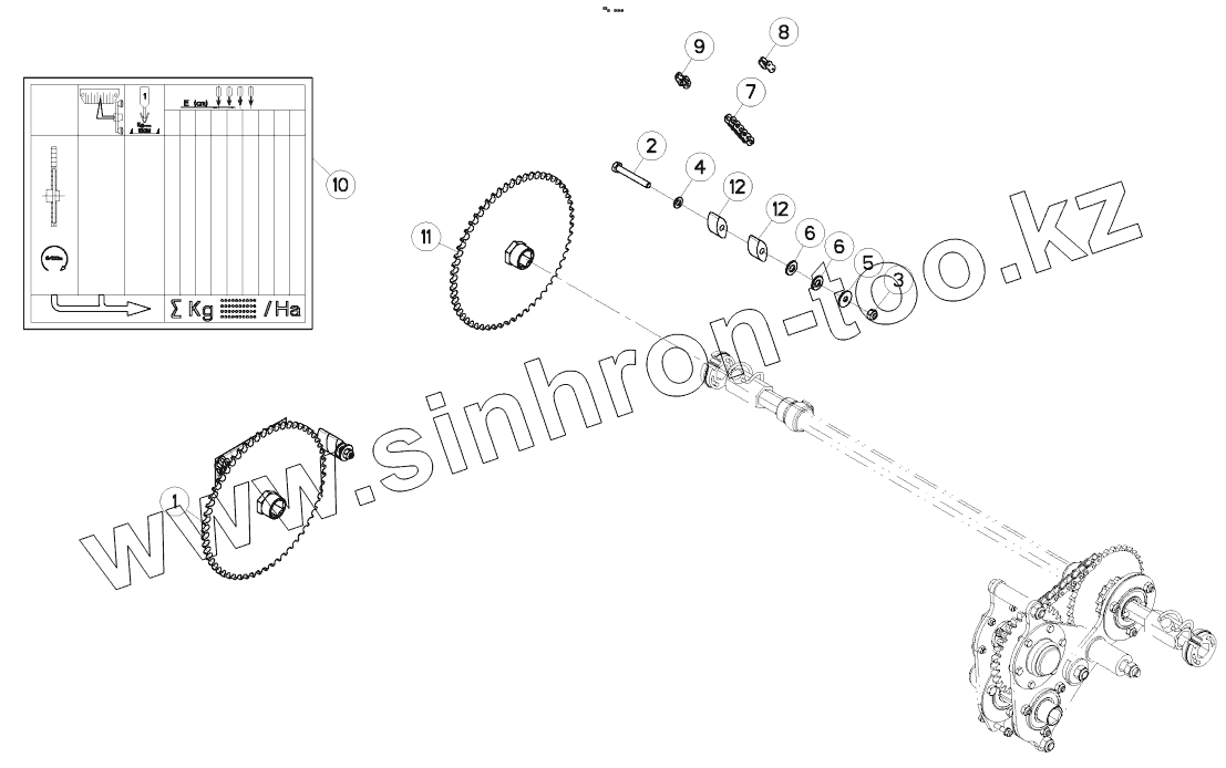 Каталог запасных частей к технике: KUHN PLANTER 3M. SET OF GEARS 57DTS (8TRS/100M)