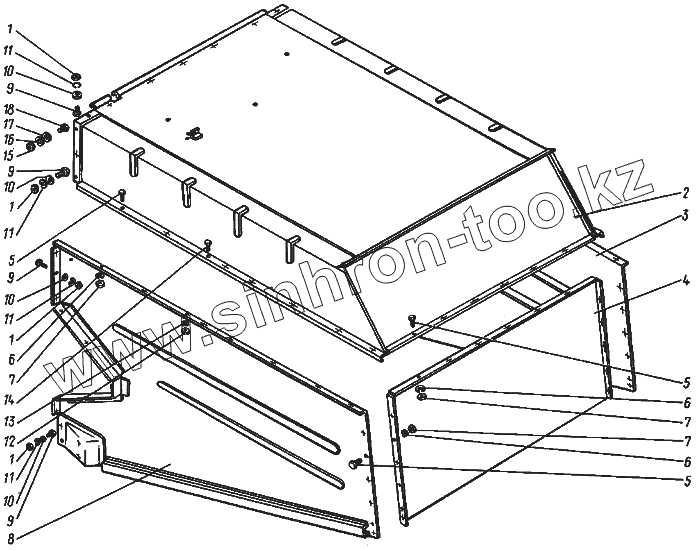 Каталог запасных частей к технике: КЗК Енисей 1200. Капот соломотряса (без копнителя) КДМ 0-113