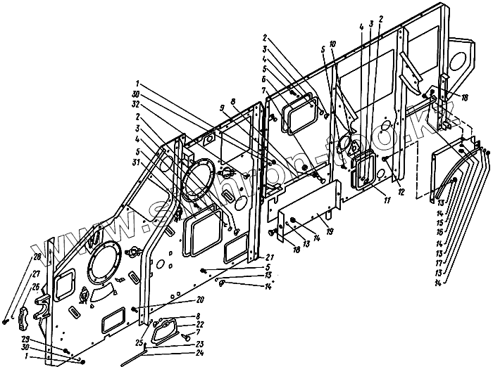 Каталог запасных частей к технике: КЗК Енисей 1200. Панель левая с лючками