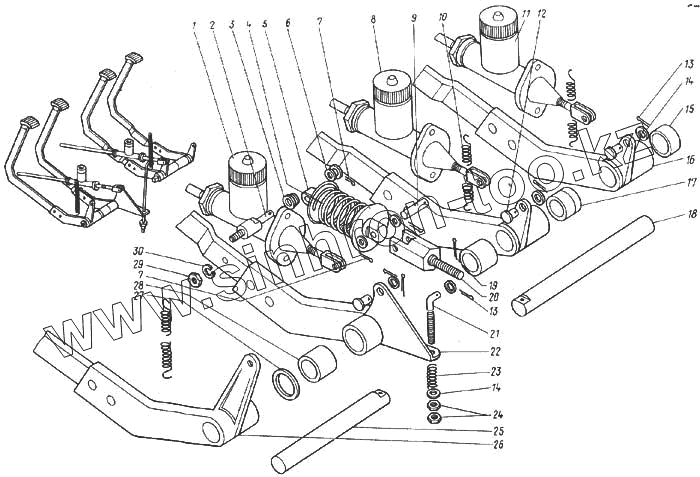 Вал сбрасывания 44-8-13В. Рычаг правый 44-8-14В