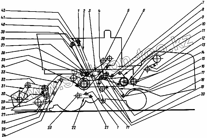 Каталог запасных частей к технике: КЗК Енисей 1200. Схема передач левой стороны Енисей-1200-Н
