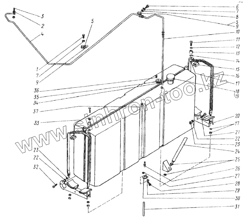 Каталог запасных частей к технике: КЗК Енисей 1200М. Бак для топлива с топливопроводами (КДМ11А)
