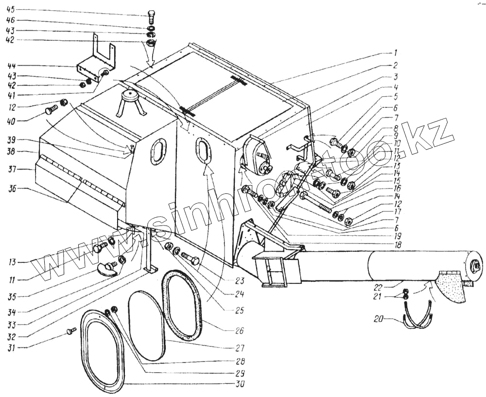 Каталог запасных частей к технике: КЗК Енисей 1200М. Бункер (КДМ6Б)