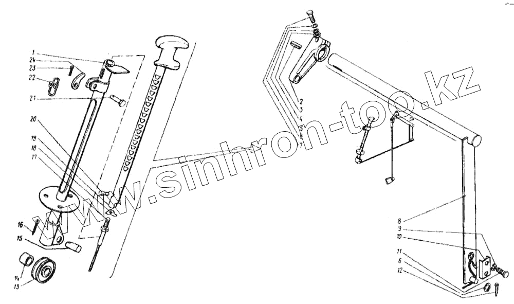 Каталог запасных частей к технике: КЗК Енисей 1200М. Колонка привода тормоза (КДМ5-47А)