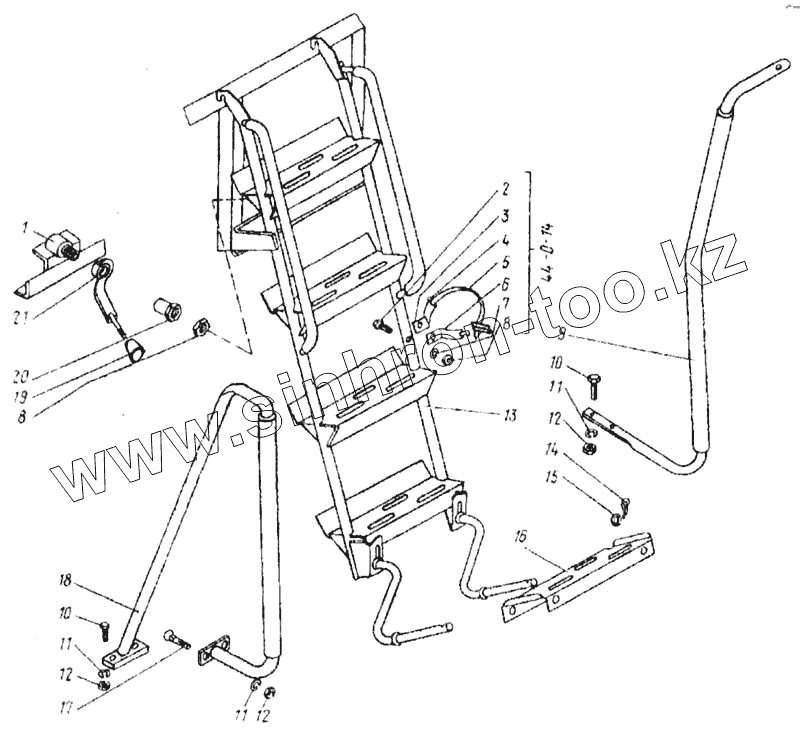Каталог запасных частей к технике: КЗК Енисей 1200М. Лестница и поручни (КДМ0-96В)